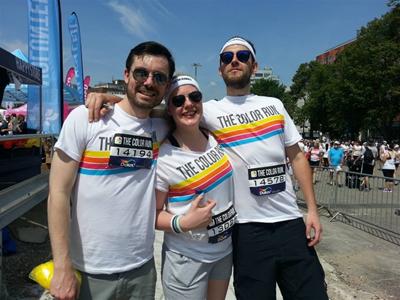 The idea of the Color Run is that everyone starts in white clothes, then every kilometre you past a “color station” where you are pelted with dyed flour by willing volunteers, and by the end you’re covered in colour and ready for the Color Festival post-race party. The party mostly involves loud music, a water cannon and more packets of colourful flour- it is a lot of fun.